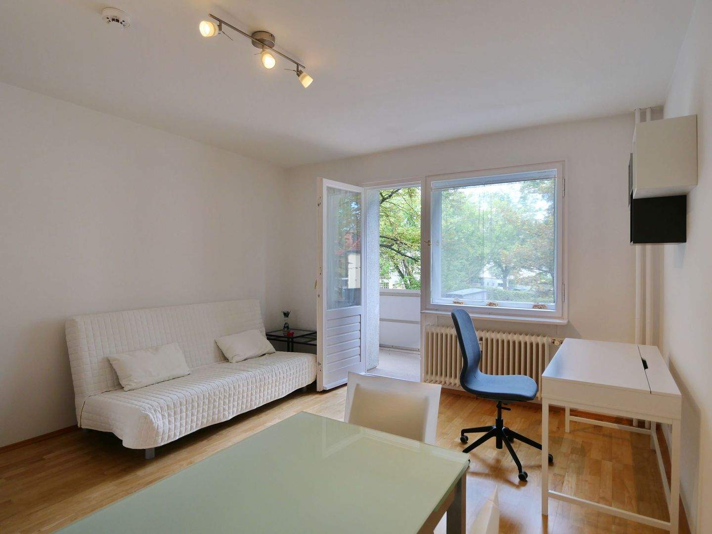 • Wohnzimmer - Erstbezug nach Sanierung: 2-Zimmer-Wohnung mit Balkon & Aufzug – ruhig gelegen, sehr gepflegt, nahe Einkauf, U-Bahn, ÖPNV & City-West-Lage