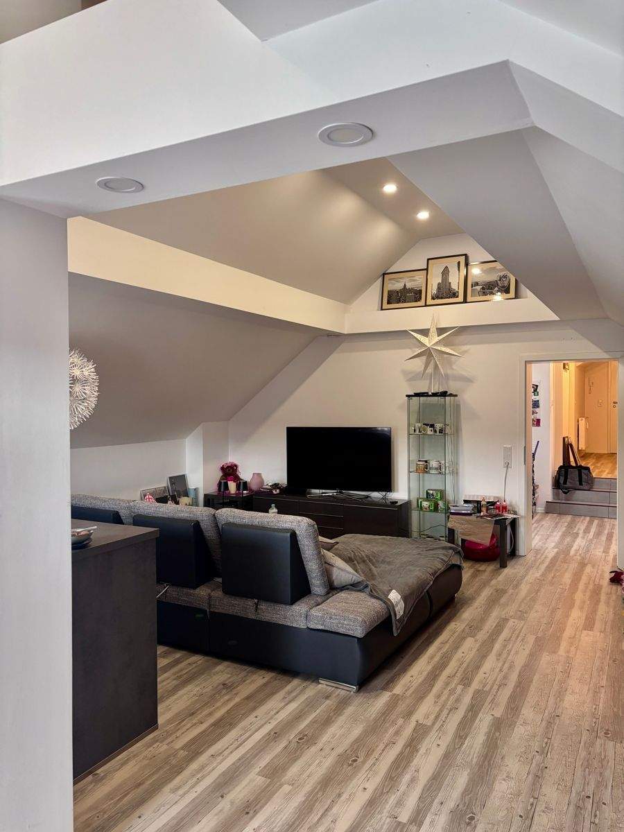 Wohnzimmer - Achtung Preisreduzierung! Exklusives Wohnen im Dachgeschoss - Kunstvolle Architektur trifft auf beeindruckende Raumhöhe