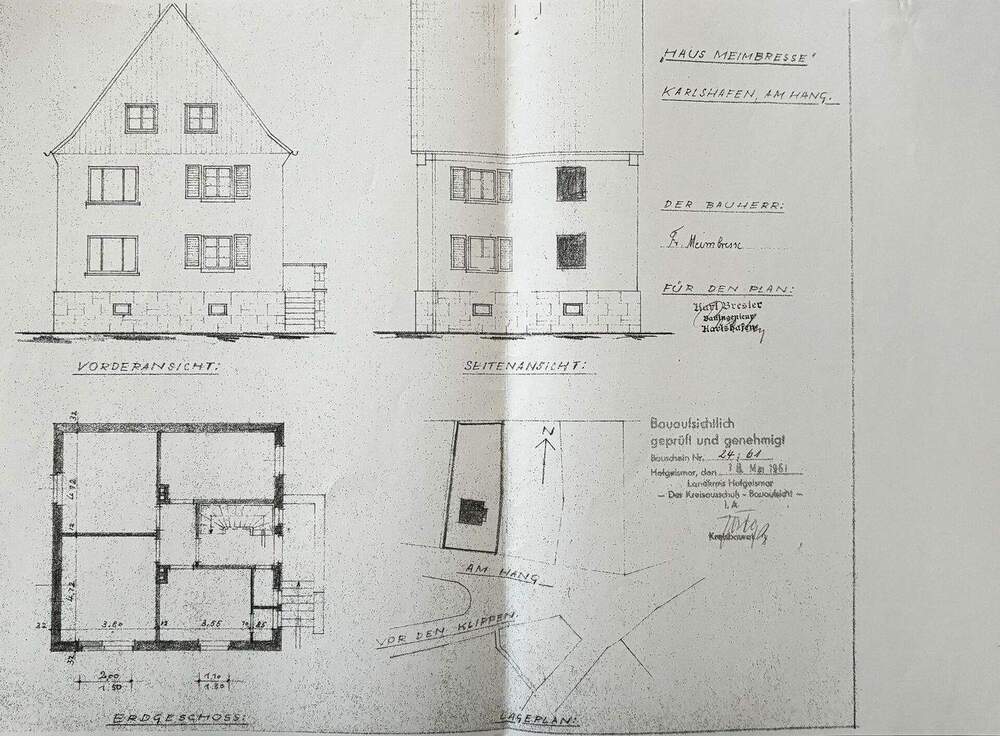 • Grundriss OG, EG, Ansichten -