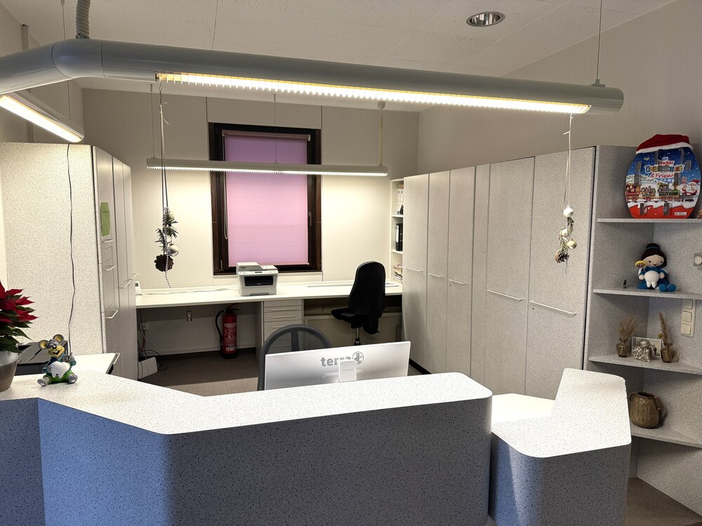 Die Räume teilen sich in Behandlungszimmer, Büro, Wartebereich, Sozialräume sowie Kunden- und Personaltoiletten auf.