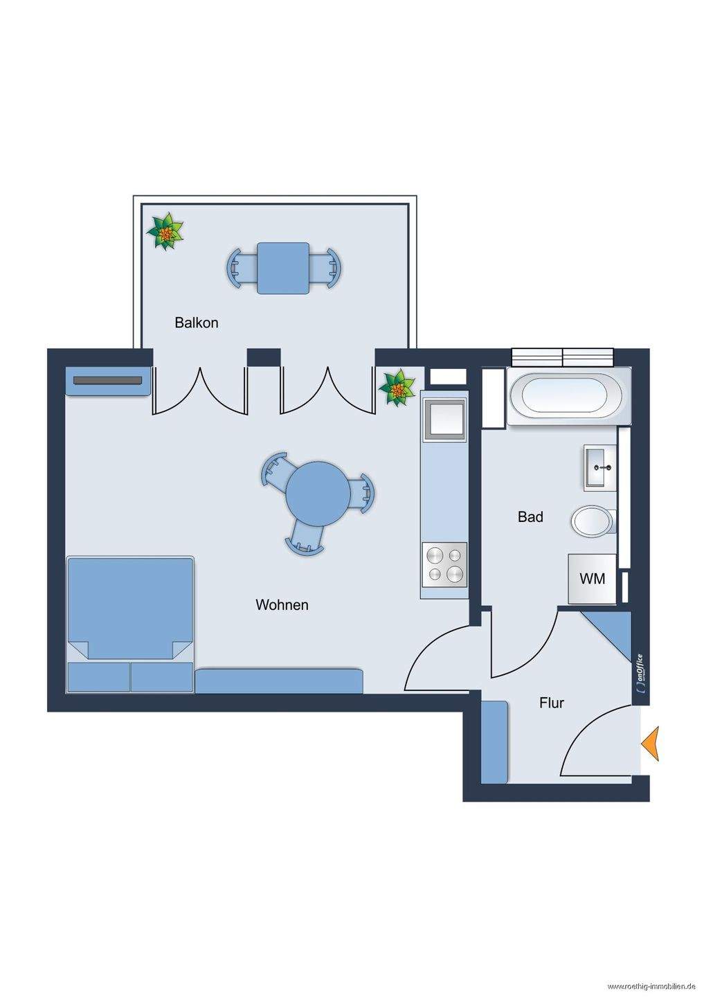 • Grundrissskizze der Wohnung - nicht maßstabsgetreu - Möblierung dient lediglich zur Veranschaulichung und ist nicht Bestandteil der Wohnung -