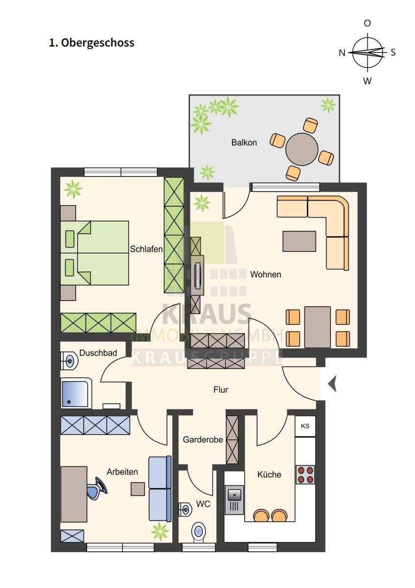 Zimmeranzahl :3 Wohnfläche :ca. 75,00 m² Baujahr :1962 Frei ab :sofort Etage :1 Balkon :