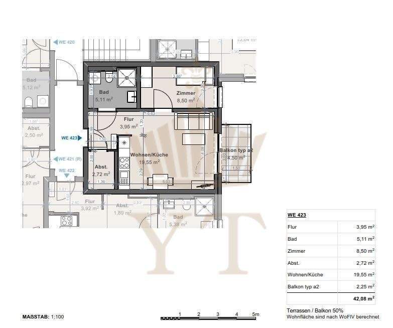 Zimmeranzahl :2 Gesamtgröße :ca. 42,00 m² Wohnfläche :ca. 42,10 m² Baujahr :2023 Frei ab :Bezug: sofort Etage :2 Balkon :