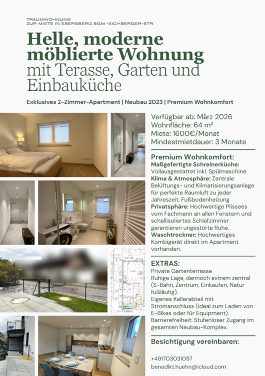 Sie befinden sich hier: Ebersberg Zentrum: Helle, moderne Wohnung mit Terasse, mobliert in Ebersberg - 3313488310-203-6071 | 1A-Immobilienmarkt.de