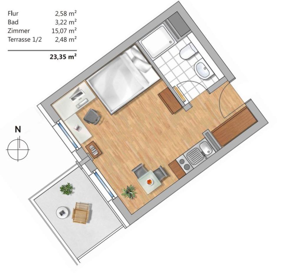Zimmeranzahl :1 Gesamtgröße :ca. 23,00 m² Stand vom :02.02.2026