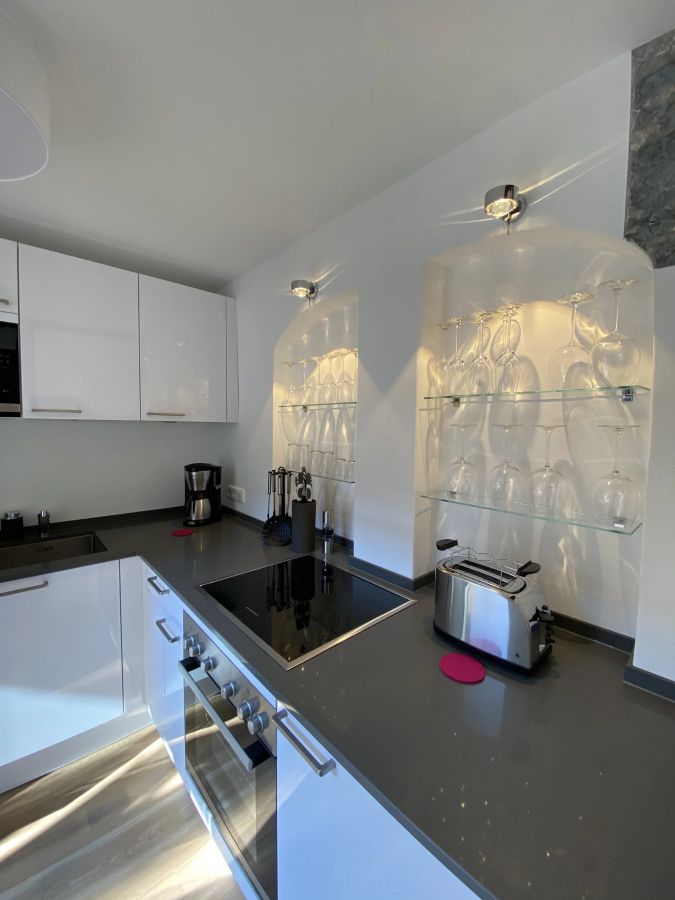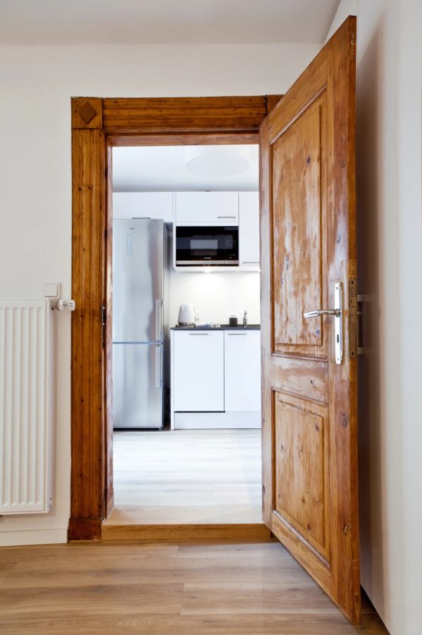 Erstbezug nach der Sanierung. Sie hat zwei große Zimmer, von 17 und 20 m², mit Dielen aus dem 16. Jahrhundert, eine große Diele mit einem sehr großen Einbauschrank (3 m breit), voll ausgestattete Küche mit Terrasse (15 qm) und Bad mit Bidet und beheiztem Spiegel. Die Wohnung ist sehr hell infolge ihrer Ausrichtung nach Süden und nach Westen.