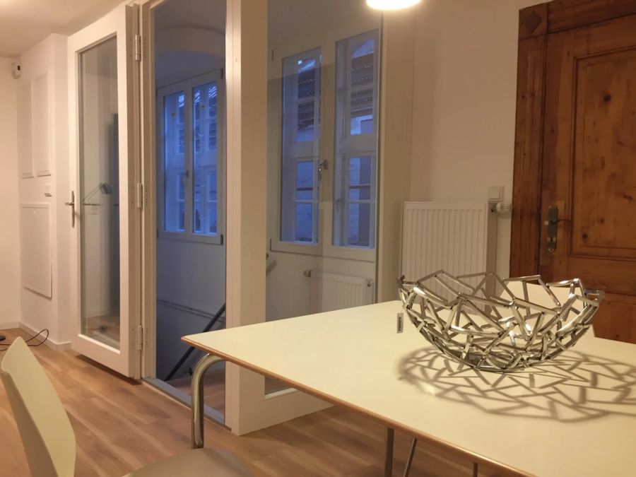 Die Wohnung befindet sich in einem sanierten denkmalgeschützten Gebäude aus dem Jahre 1389 mitten in der Altstadt. Auch ist sie sehr ruhig, da sie in der Fußgängerzone liegt. 50 m entfernt befindet sich ein öffentlicher Parkplatz. Im Hof, der im Sommer genutzt werden kann, können Fahrräder abgestellt werden. Ein großer Keller steht zur Verfügung.