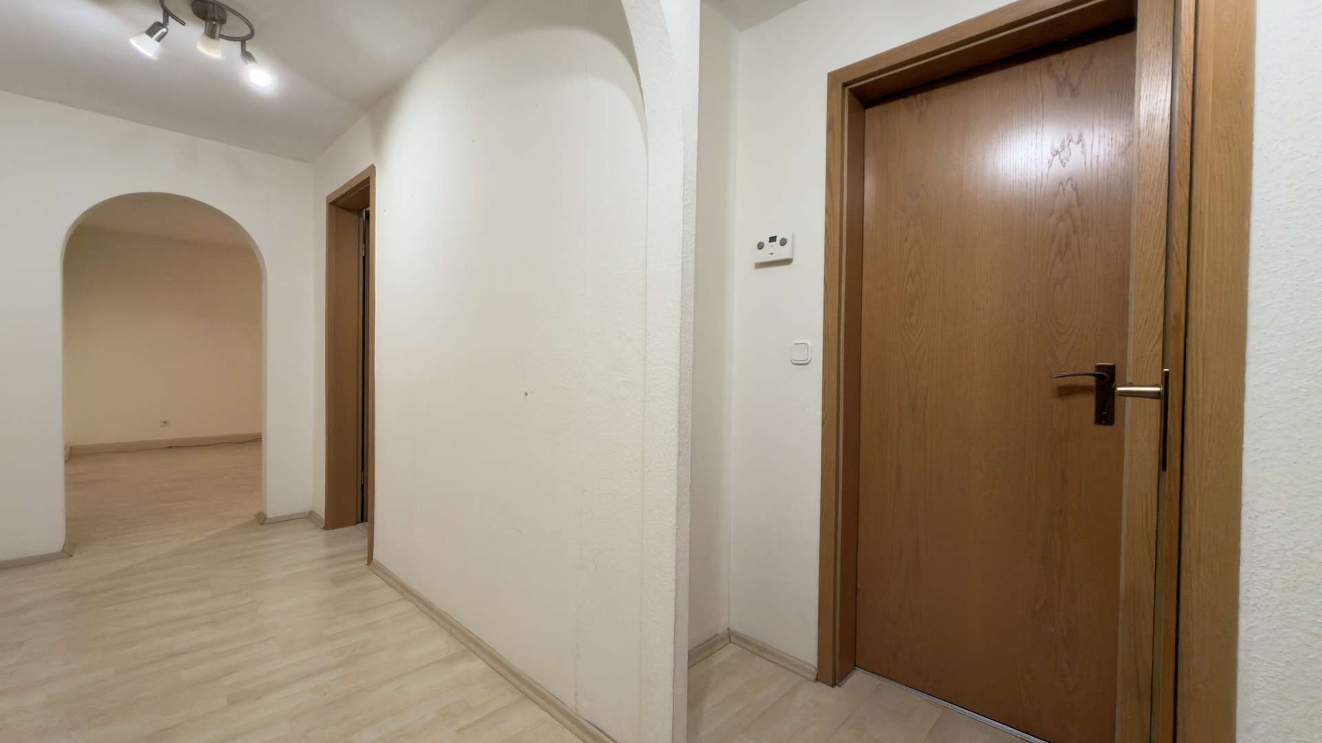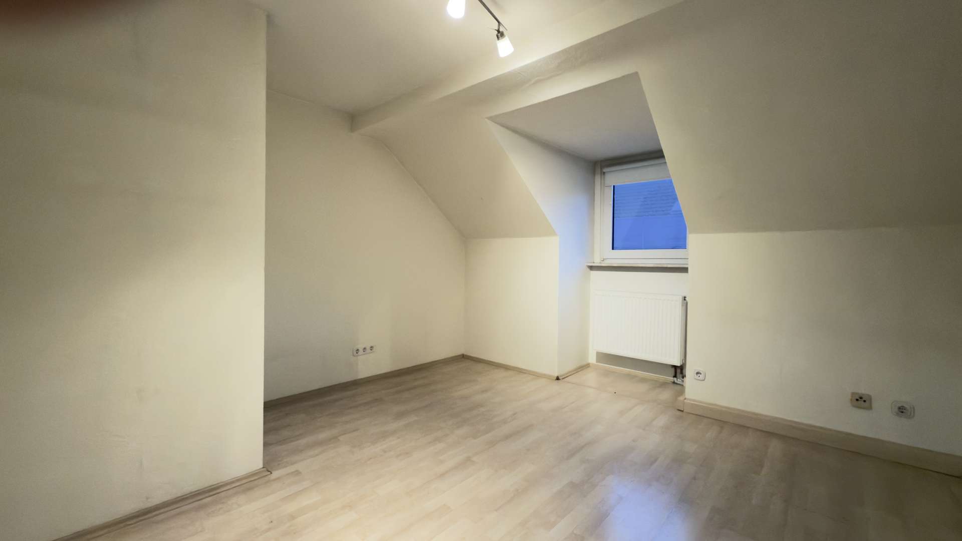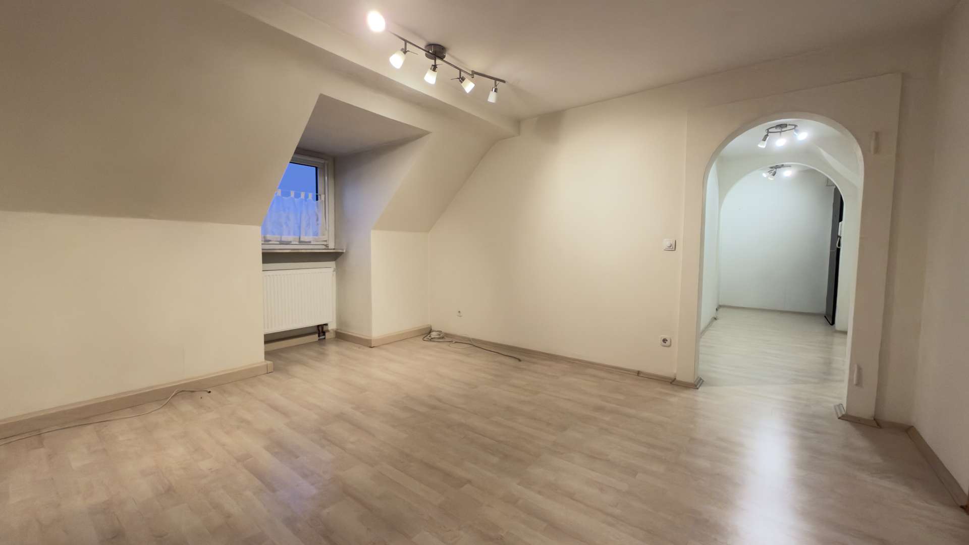 Die Wohnung befindet sich im Dachgeschoss links und verfügt über eine Wohnfläche von ca. 60 m². Die Raumaufteilung umfasst insgesamt dreieinhalb Zimmer, darunter zwei Schlafzimmer, ein Wohnzimmer sowie ein modern ausgestattetes Badezimmer. Beim Betreten der Wohnung gelangt man in einen sehr ansprechend gestalteten Flur, der eine klare Übersicht bietet und den Zugang zu den einzelnen Räumen harmonisch verbindet. Die Räume sind gut geschnitten, lichtdurchflutet und vermitteln durch ihre Fensterflächen einen angenehmen Sonnenlichteinfall, wodurch eine freundliche und wohnliche Atmosphäre entsteht. Das Badezimmer wurde im Jahr 2015 vollständig kernsaniert und hochwertig ausgestattet. Es verfügt über eine moderne Dusche, ein zeitloses Hänge-WC sowie ein integriertes Badezimmerradio der Marke Gira. Zudem wurde ein großzügiger Waschmaschinenplatz geschaffen.