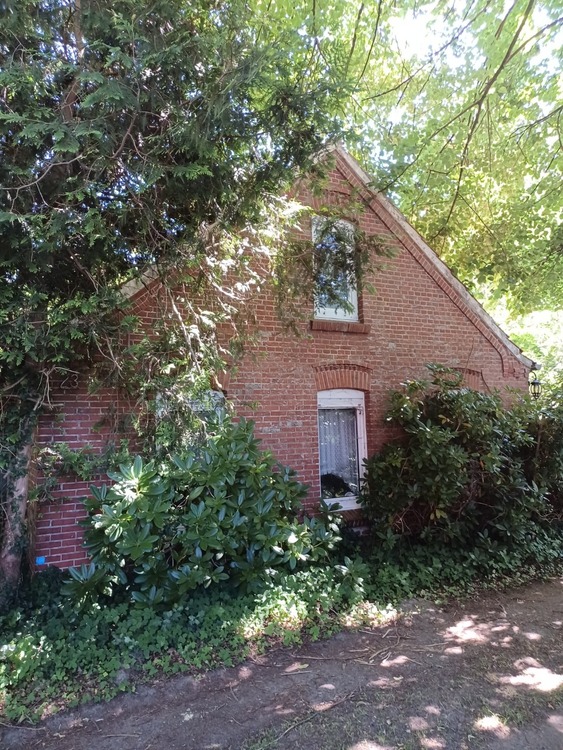 Auf der Hofstelle befindet sich ein um etwa 1950 errichtetes, seit ca. 10 Jahren unbewohntes Siedlungshaus mit einer Wohnfläche von ca. 78 m² im Erdgeschoss und einer Nutzfläche von ca. 35 m² im nicht ausgebauten Dachgeschoss. Das Erdgeschoss umfasst drei Zimmer, Küche, Flur und ein Bad. Die dem Exposé angefügten Innenfotos des Wohnhauses stammen aus dem Jahr 2016. Seitdem wurde das Wohnhaus nicht wieder betreten und aufgrund des Zustandes kann auch im Rahmen des Verkaufs der Zutritt nicht ermöglicht werden. Insgesamt zeigt das Gebäude deutliche Bau- und Nutzungsmängel, die durch Leerstand und Nichtbeheizen zu einer weiteren Verschlechterung des Zustandes geführt haben.
