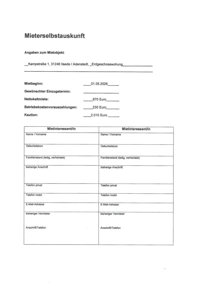 Angebot zur Miete