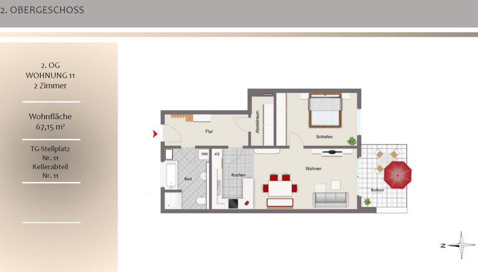 Zimmeranzahl :2 Gesamtgröße :ca. 67,15 m² Stand vom :09.02.2026