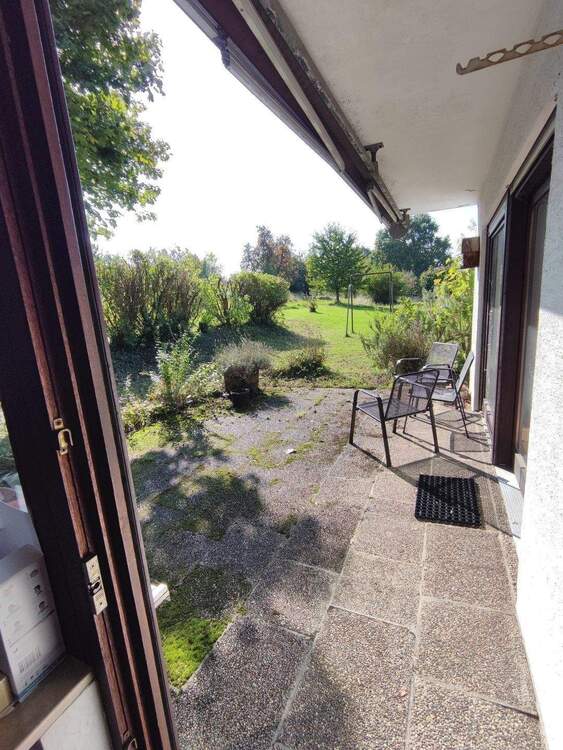 • Balkonausblick im DG in den Garten -
