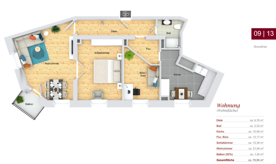 | Gesamtgröße: | ca. 71,00 m² |