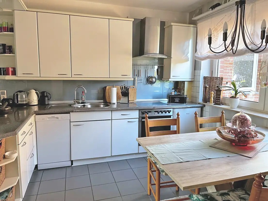 Beim Betreten der Wohnung empfängt Sie ein freundlicher, weitläufiger Flur, von dem aus alle Räume erreichbar sind. Das Herzstück der Wohnung bildet die großzügige Küche mit integriertem Essbereich – ein Ort, an dem Alltag und Geselligkeit zusammentreffen. Hier ist ausreichend Platz, um gemeinsam zu kochen, zu essen und das Familienleben zu genießen.
