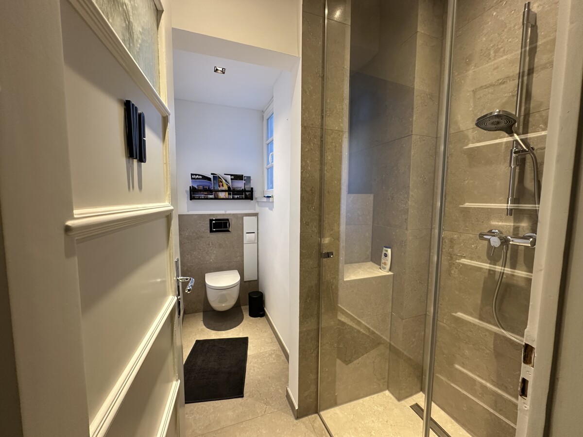Das moderne Tageslichtbad - En-suite-Bad - ist direkt vom Schlafzimmer aus begehbar. Zusätzlich steht Ihnen ein separates Gästebad mit Dusche zur Verfügung, das auch Ihren Besuchern höchsten Komfort bietet.