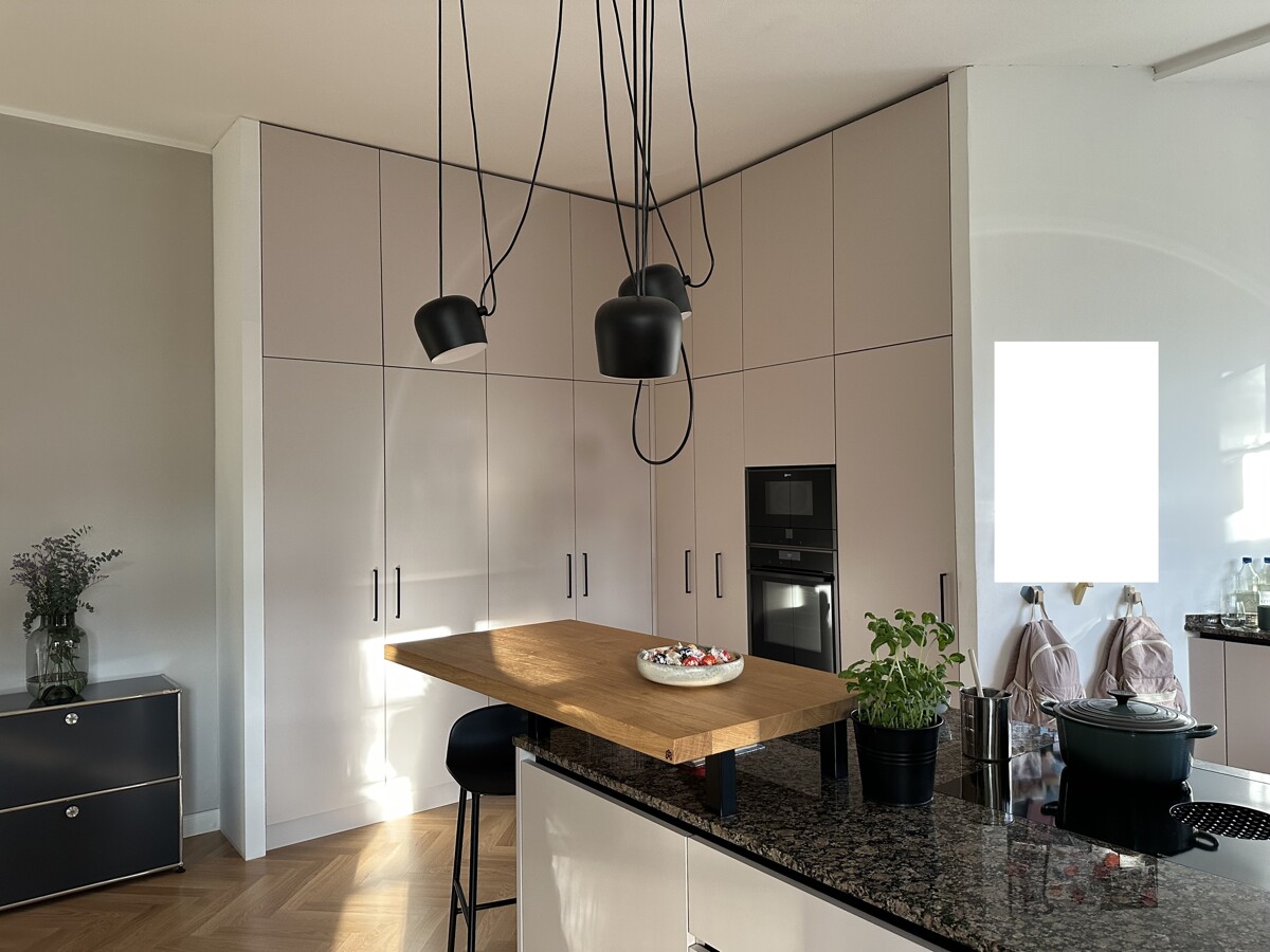 Die luxuriöse Marken-Einbauküche ist optimal in den Wohn-Essbereich integriert und bildet ein weiteres Highlight der Wohnung - selbstverständlich ist diese bereits im Mietpreis enthalten.