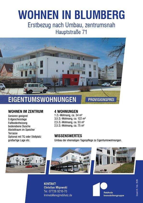 Sie befinden sich hier: Eigentumswohnung in Blumberg – 2,5 Zi, 53 m², Erstbezug nach Umbau in Blumberg - 26IBEPTSMH1H | 1A-Immobilienmarkt.de