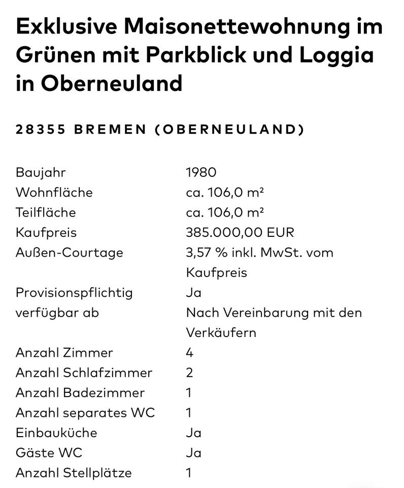 Maisonettenwohnung in Bremen, Oberneuland 28355