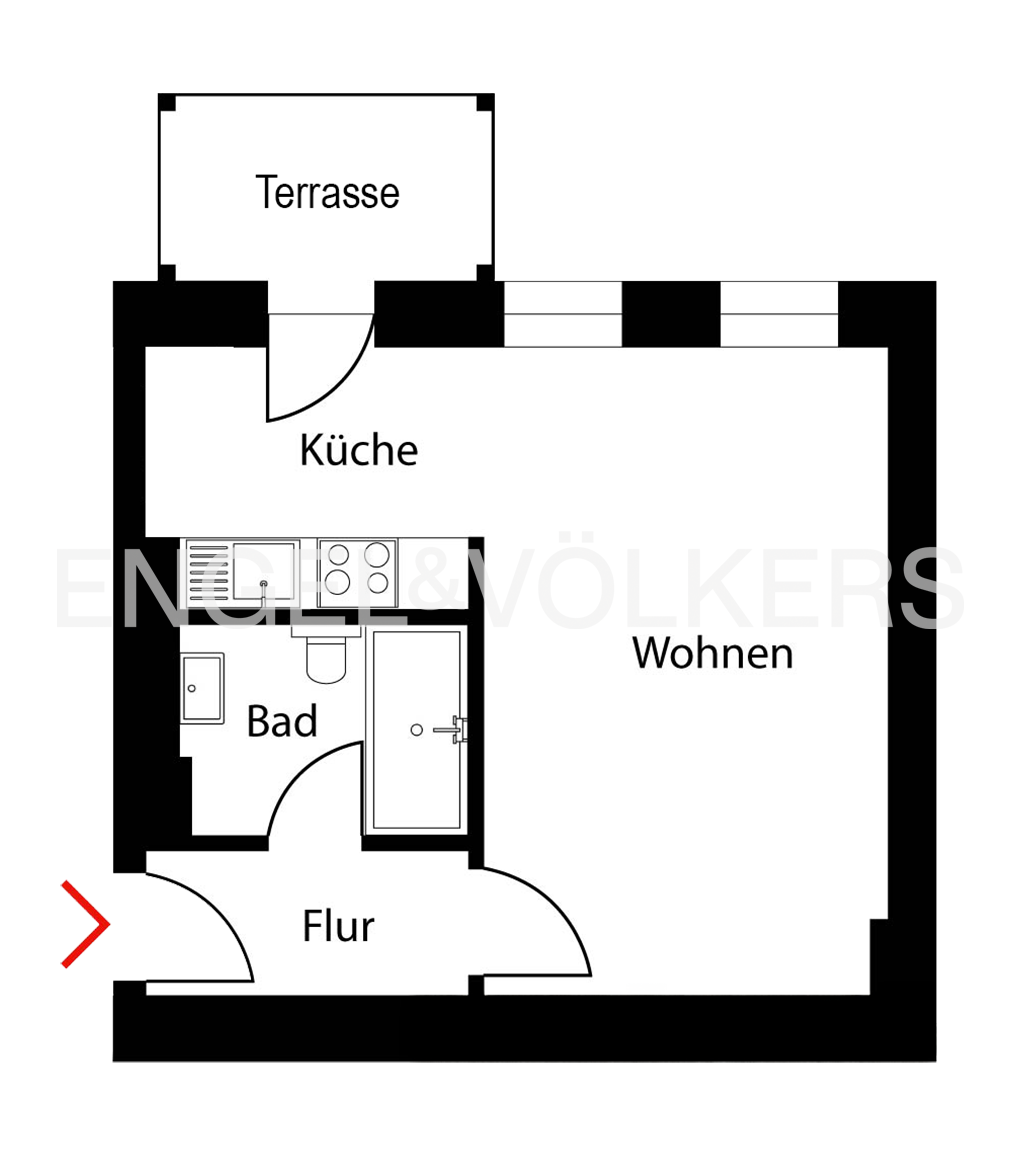 Küche mit Austritt zur Terrasse - 1 Zimmer Etagenwohnung zum Kaufen in Berlin