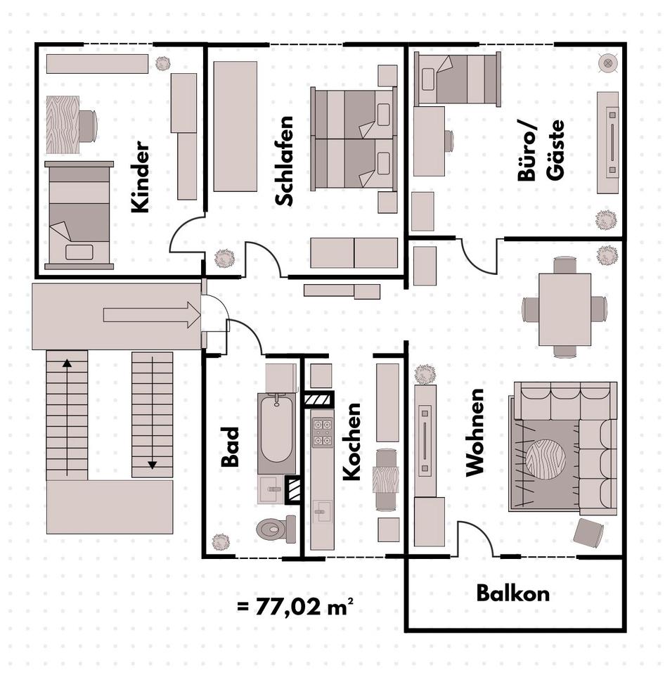 Gesamtgröße:ca. 77,00 m²