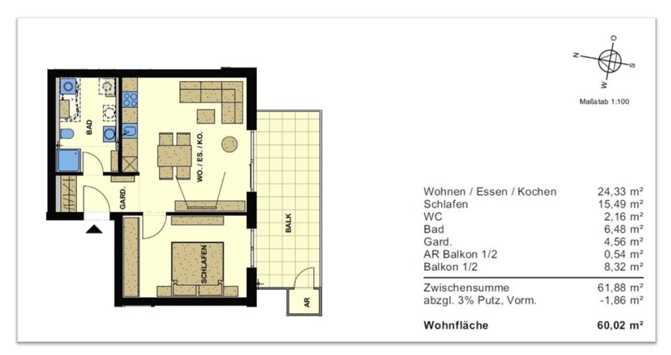Zimmeranzahl :2 Gesamtgröße :ca. 60,00 m² Stand vom :10.02.2026