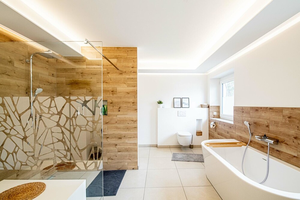 - hochwertige Holzfußböden und Sanitärausstattung