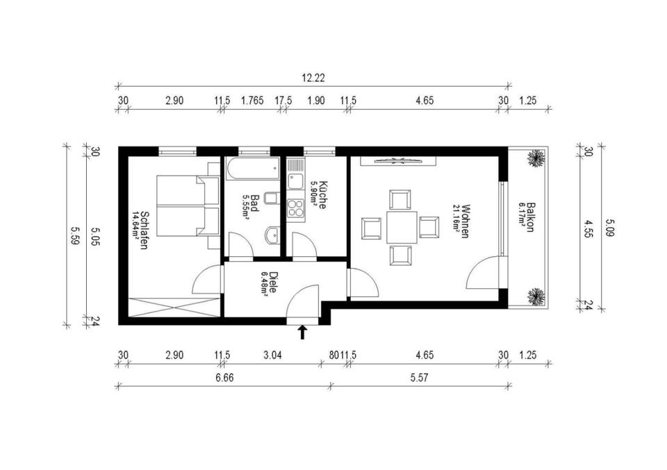 Gesamtgröße:ca. 57,50 m²