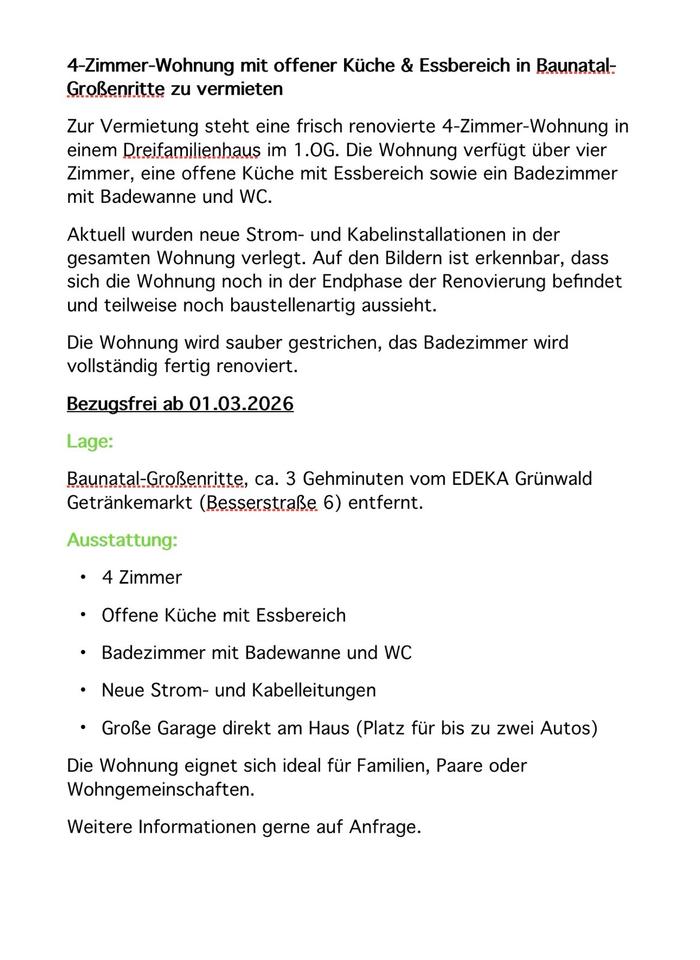 Angebot zur Miete