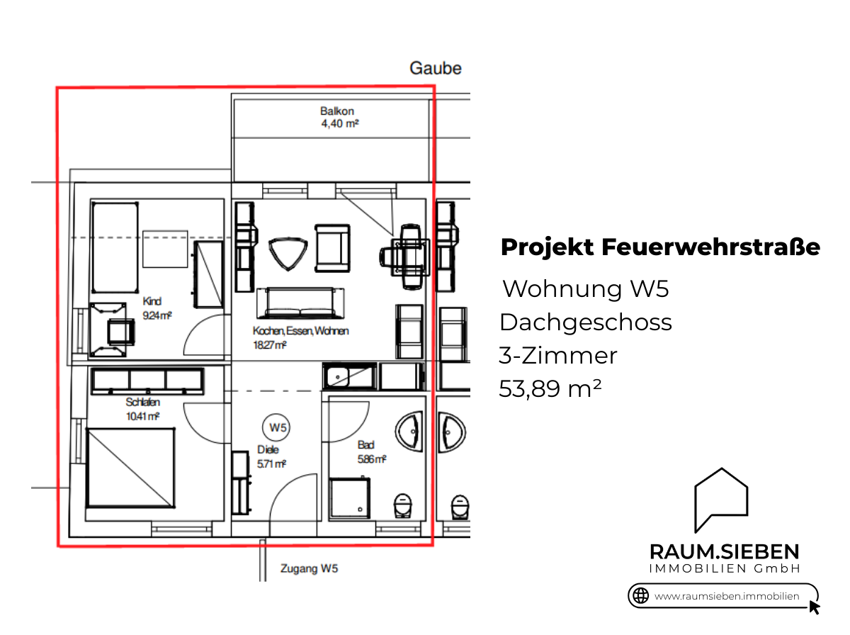 Grundriss Wohnung 5 im Dachgeschoss - Etagenwohnung mit 53,90 m² in Lahr/Schwarzwald zum Kaufen