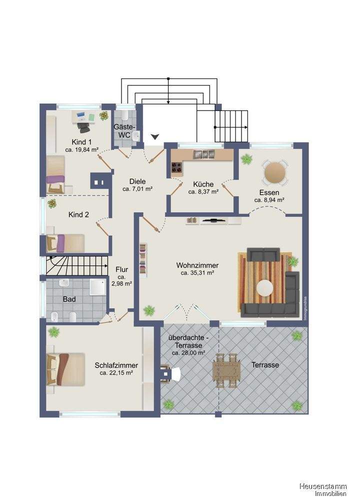 • Terrasse visualisiert - 4 Zimmer Bungalow in Heusenstamm