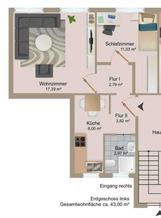 | Gesamtgröße: | ca. 43,00 m² |