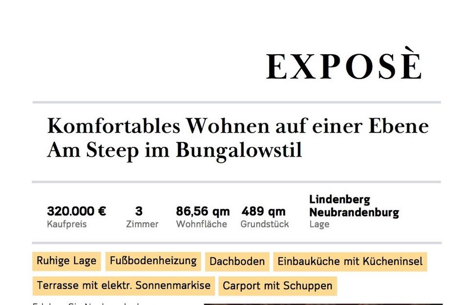 Sie befinden sich hier: Bungalow in ruhiger Lage in Neubrandenburg (Am Steep) in Neubrandenburg - 3317135450-208-253 | 1A-Immobilienmarkt.de