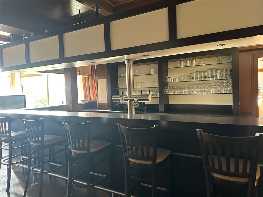 Zum Kaufumfang gehören auch sämtliche Einrichtungsgegenstände, von der Empfangsanlage im Hotel, Hotelzimmermöblierung mit TV Geräten, bis hin zur Saalbestuhlung und Terrassenmöbeln. Mehrere Thekenanlagen, sowie Gläser und Geschirr in großen Stückzahlen.
