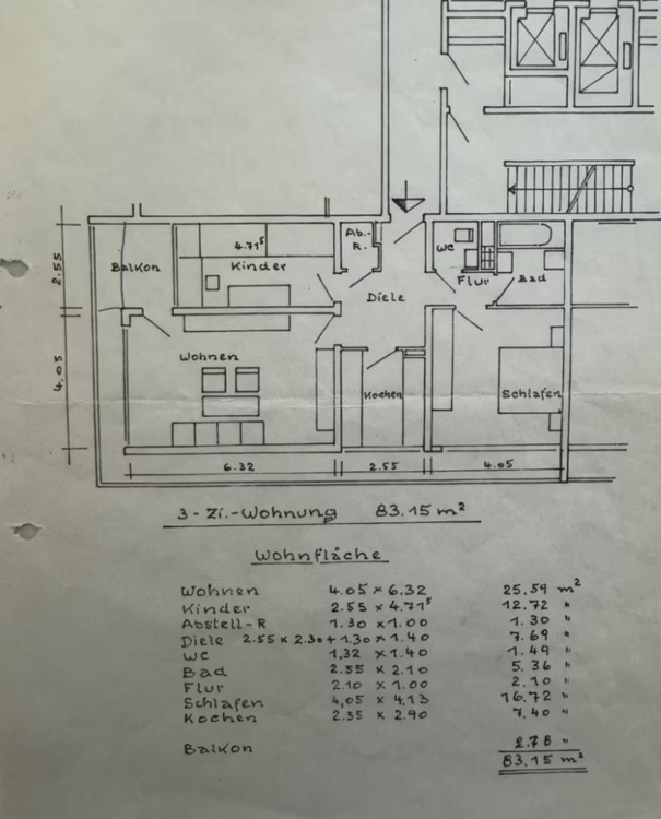 Gesamtgröße:ca. 83,00 m²
