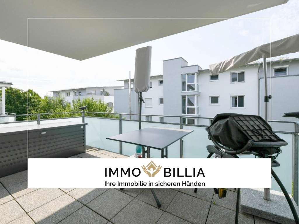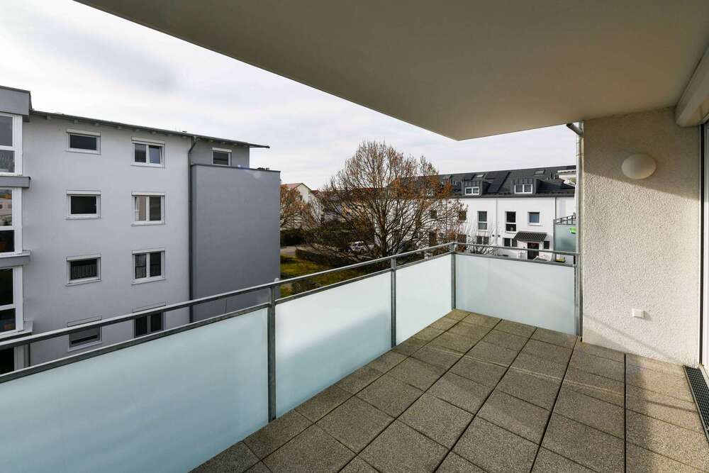 Der große, überdachte Balkon erweitert den Wohnraum ins Freie und wird schnell zum persönlichen Lieblingsplatz. Ob morgendlicher Kaffee, entspannte Abende oder einfach ein Moment für sich – der Blick ins Grüne sorgt für Ruhe und lässt den Alltag in den Hintergrund treten.