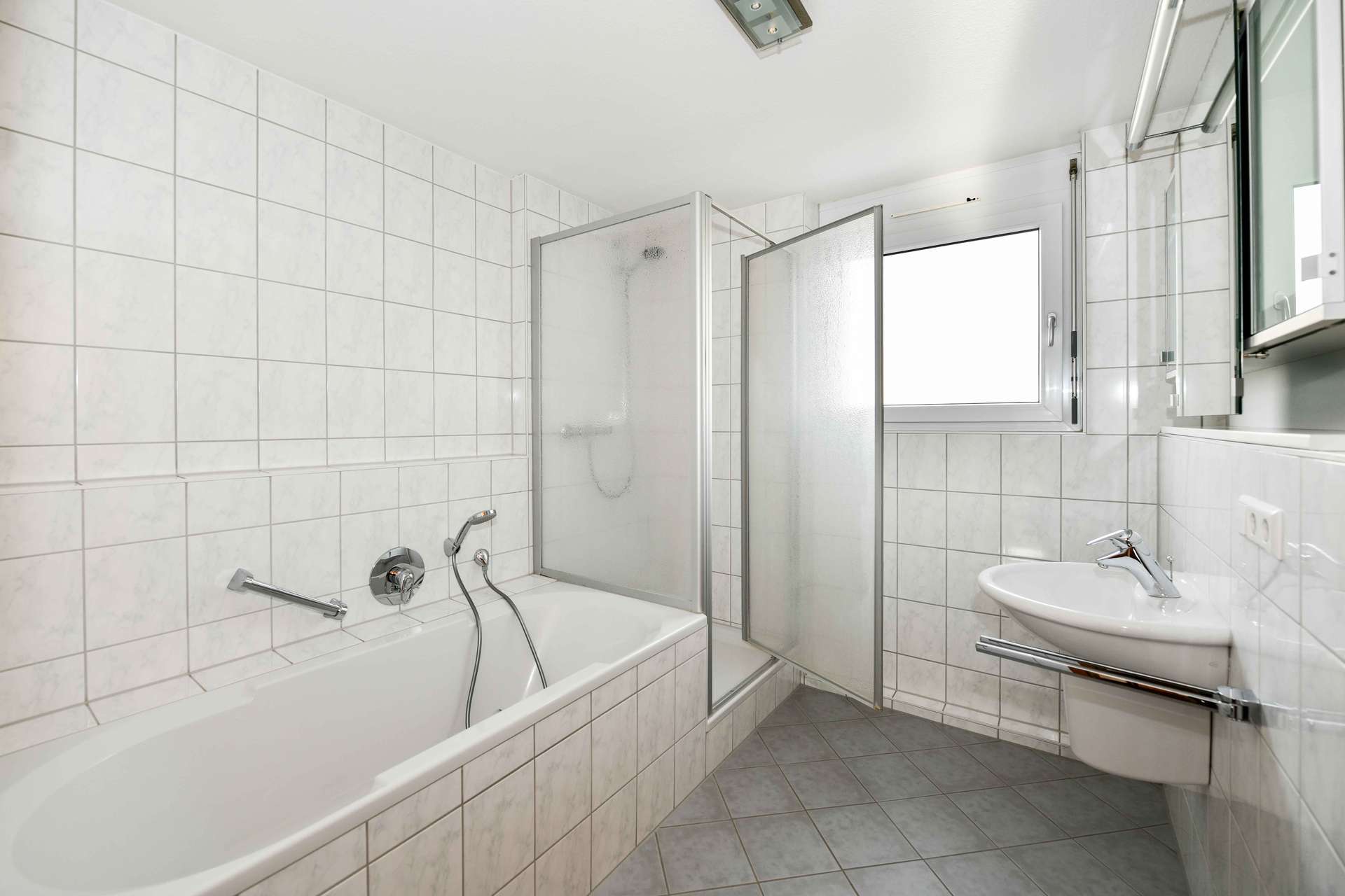 Das Bad präsentiert sich hochwertig und harmonisch, mit Badewanne und separater Dusche, während ein zusätzliches Gäste-WC den Wohnkomfort angenehm ergänzt. Eine Gaszentralheizung sowie Fußbodenheizung in Bad und Küche sorgen ganzjährig für ein behagliches Raumklima.