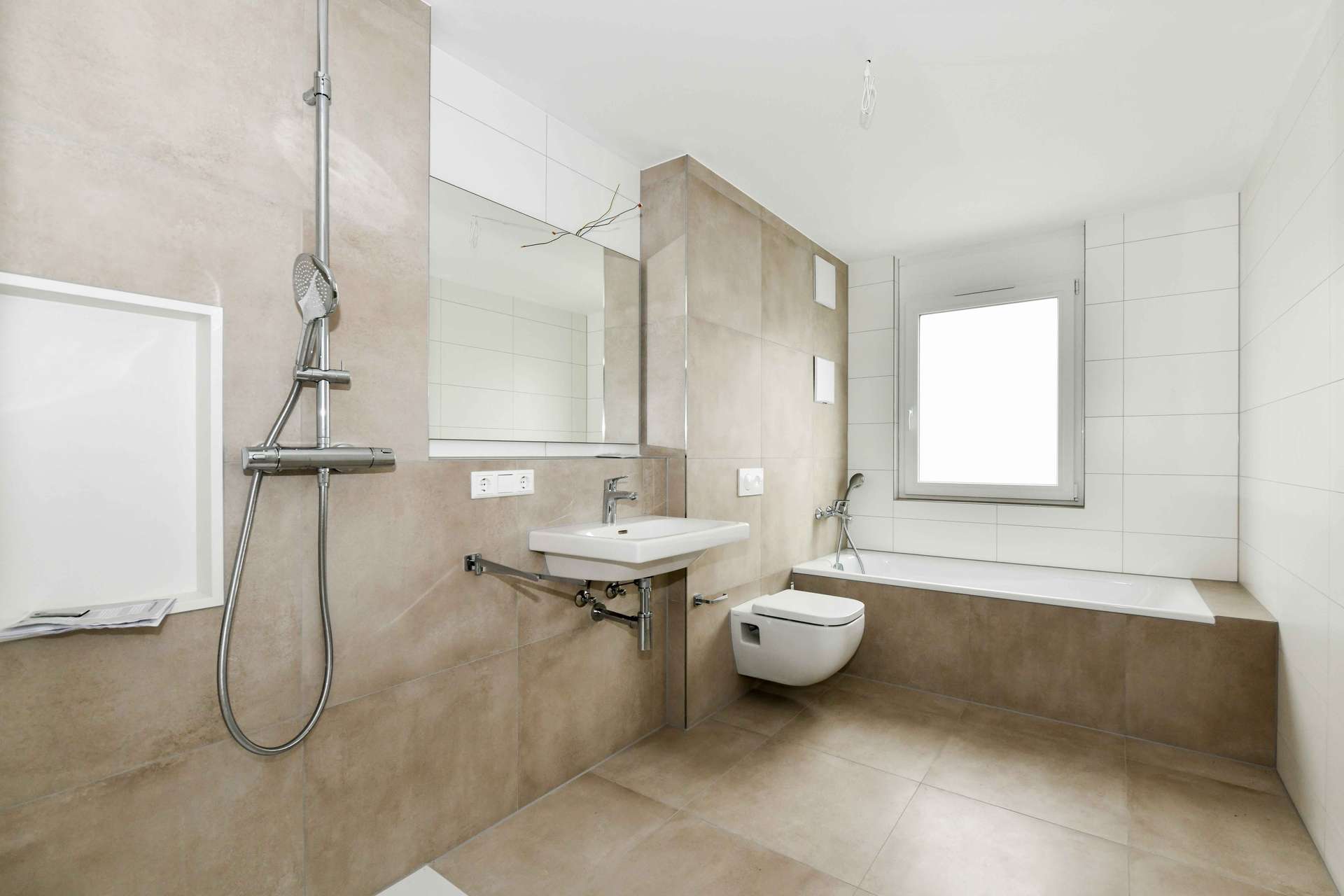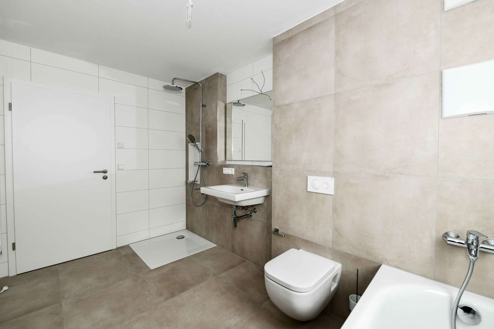 Die Wohnungen begeistern durch großzügige, lichtdurchflutete Räume und eine hochwertige Ausstattung: Edle 60/30-Bodenfliesen, stilvoller Feinputz an den Wänden, eine bodengleiche Dusche mit Duschtrennwand sowie ein elektrischer Handtuchheizkörper sorgen für modernen Wohnkomfort. Weiße, hochwertige Innentüren, elektrische Rollläden und LAN-Dosen in nahezu allen Räumen unterstreichen den hohen Qualitätsanspruch.