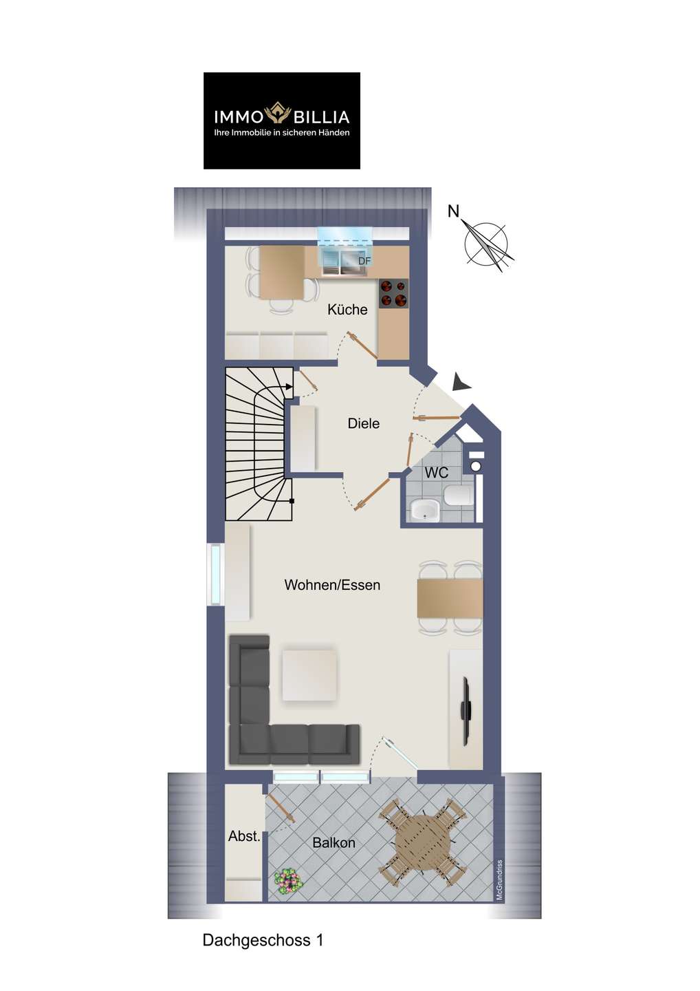 Eine Gewähr für die Richtigkeit sämtlicher im Exposé enthaltener Angaben und Abmessungen wird trotz sorgfältiger Bearbeitung von Daten, Bildern und Informationen nicht übernommen.