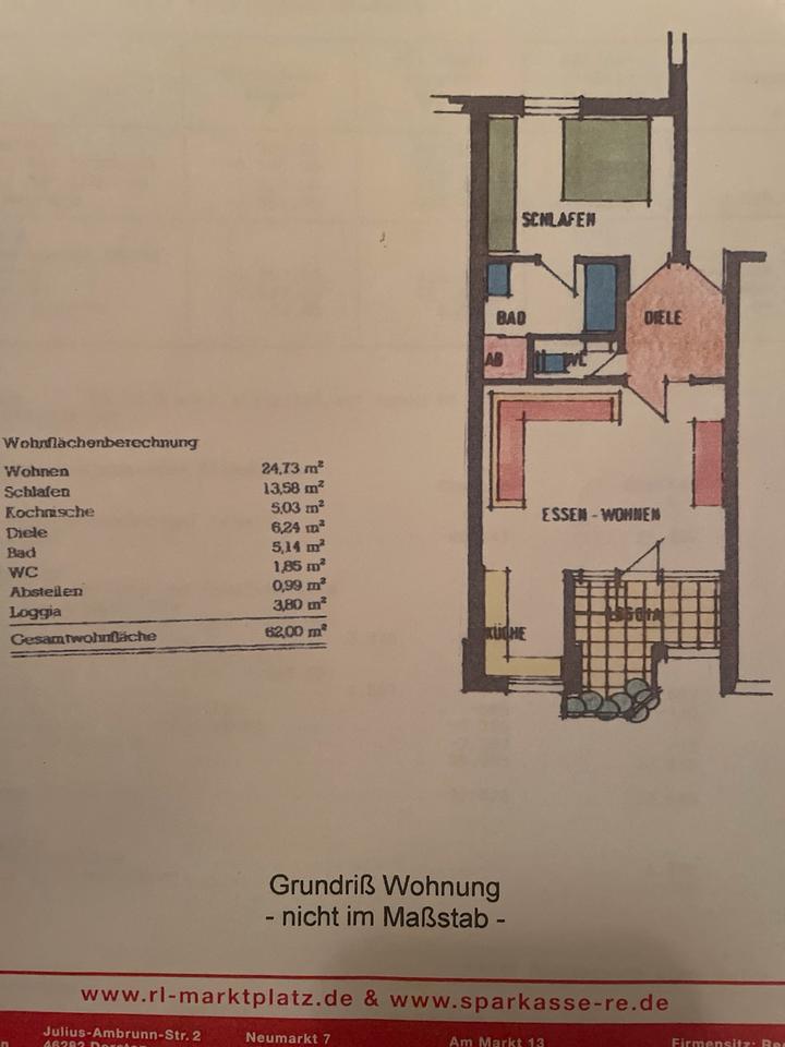 Zentral in Dorsten: vermietete 2,5- Raum ETW mit Tiefgarage