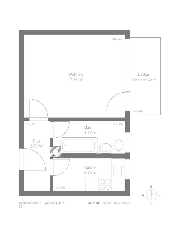 Gesamtgröße:ca. 34,00 m²