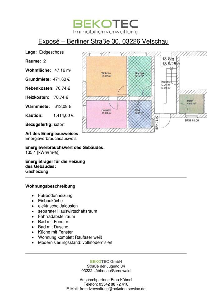 Sie befinden sich hier: Modernisierte 2-Raum-Wohnung im Erdgeschoss – Komfortabel Wohnen in Vetschau/Spreewald - 3321993656-203-7805 | 1A-Immobilienmarkt.de
