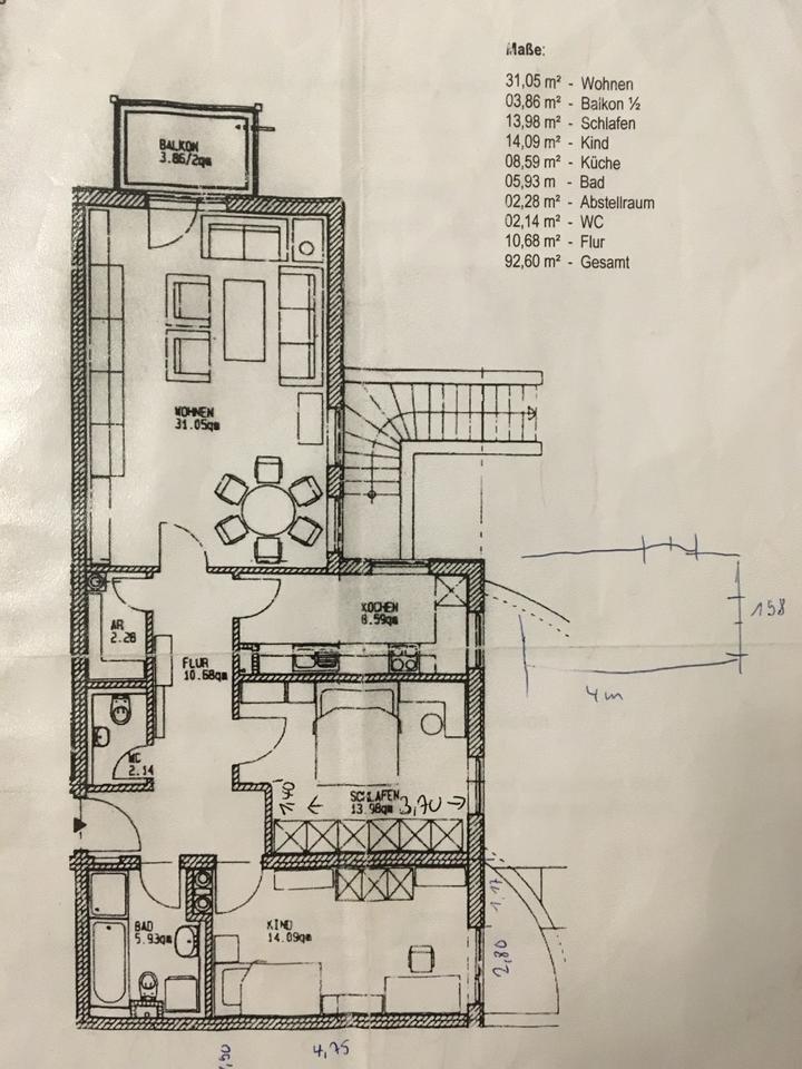 Gesamtgröße:ca. 93,00 m²