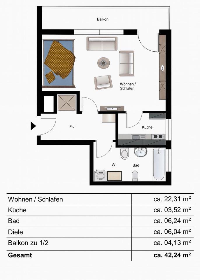 Gesamtgröße:ca. 42,00 m²