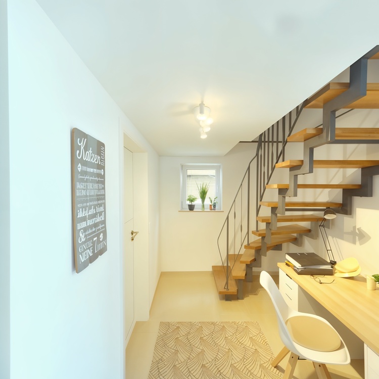Im Untergeschoss befinden sich neben einem großen Kellerraum drei weitere Zimmer. Sollte die bestehende Heizung – Baujahr 2018 – zukünftig auf Gas oder Wärmepumpe umgestellt werden, besteht sogar die Möglichkeit, ein zusätzliches Zimmer zu schaffen. Ein Abstellraum sowie ein Gäste-WC im Erdgeschoss bieten weiteren Komfort und reichlich Stauraum.