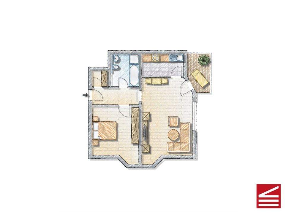• Flur - Eingang - Abstellraum rechts, Bad u. Schlafen links - 2 Zimmer Etagenwohnung zum Kaufen in Baden-Baden