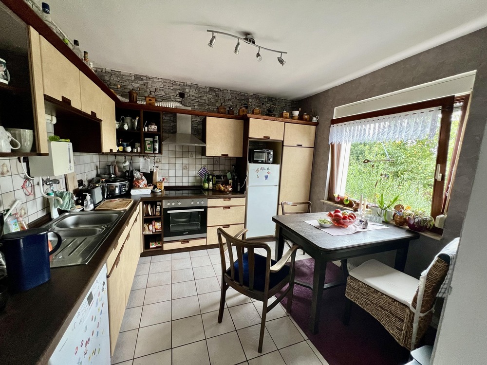 Dieses Einfamilienhaus aus dem Jahr 1957 bietet viel Raum für Ideen und die Chance, ein Zuhause ganz nach den eigenen Vorstellungen zu gestalten. Die rund 100 m² Wohnfläche verteilen sich auf Erd- und Kellergeschoss. Durch die Hanglage konnten im Untergeschoss weitere Wohnräume geschaffen werden, sodass insgesamt fünf Zimmer zur Verfügung stehen. Vom Kellergeschoss gelangt man zudem direkt auf eine schöne Terrasse, die zum Entspannen im Grünen einlädt. Im Dachgeschoss befinden sich darüber hinaus zwei wohnlich ausgebaute Räume, die sich ideal als Kinderzimmer oder Homeoffice eignen - diese zählen aktuell nicht zur Wohnfläche dazu. Zusätzlich besteht hier noch Potenzial, weitere Räume auszubauen.