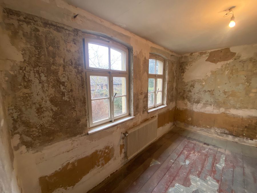 Aktuell handelt sich um ein Einfamilienhaus, dass aus dem Jahr 1895 stammt. Es bedarf eine Kernsanierung. Das Haus besteht aus dem zweigeschoßigen Vorderhaus und rückwärtig angebaute Scheune, die in Wohnfläche umgewandelt werden kann. Bei dem Nachbarhaus wurde die Scheune in Wohnfläche umgewandelt. Das Vorderhaus verfügt über zirka 90 QM Wohnfläche und nach Ausbau der Scheune kann die Wohnfläche auf 115 QM erhöht werden. Die Wohnfläche kann durch Anbau sehr stark erhöht werden. Die Nachbarbebauung ist 2!/2 -geschossig. Es lässt sich nach Abstimmung mit Bauamt durch Anbau Wohnfläche stark erweitert werden. Die ersten Kalkulationen haben sich ergeben, dass im vorderen Bereich zirka 450 QM und im Hinteren Bereich zirka 200 QM Wohnfläche realisiert werden. Das Grundstück bietet zusätzlich die Möglichkeit auch Haus an Haus anzubauen, um die optimale Ausnutzung von dem Grundstück zu erreichen. Das Vordere Haus ist ein Teil des Gesamtgrundstückes. Das kaan auch aufgeteilt werden und zusätzlich kann über den Teil des vorderen Grundstückes ein Wegerecht eingeräumt werden, um die Erschließung des hinteren Grundstückes zu ermöglichen. Ein Kauf vom nur Vorderhauhaus ist auch mit einem Preis von 295000, 00 möglich ( Vorderhaus mit Scheune zirka 305 QM und Baugrundstück mit 902 QM)