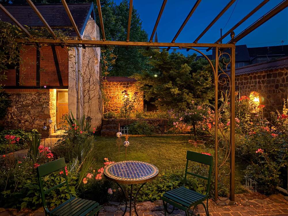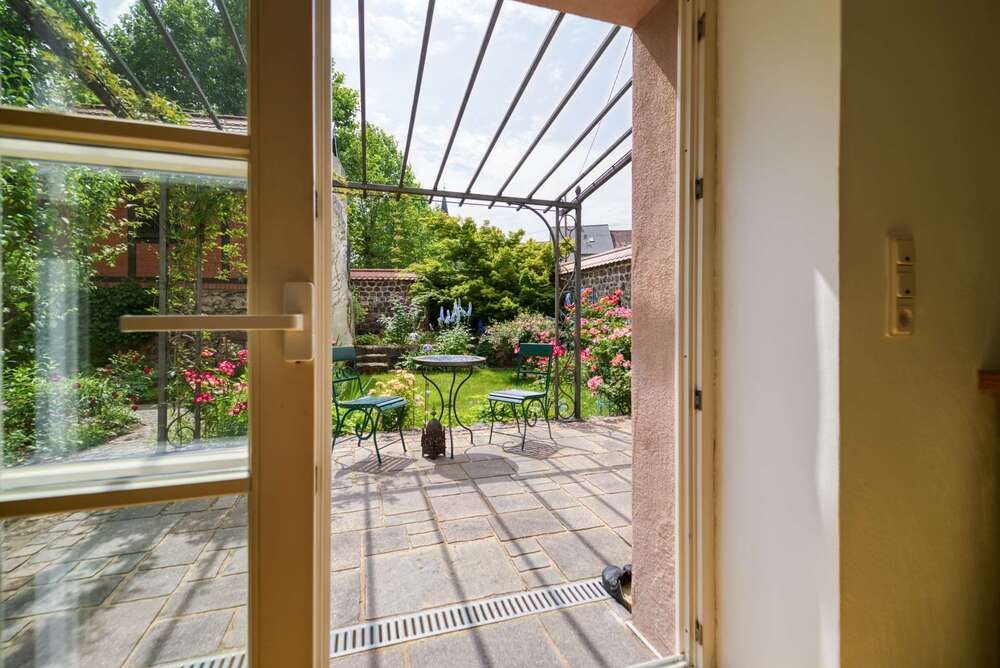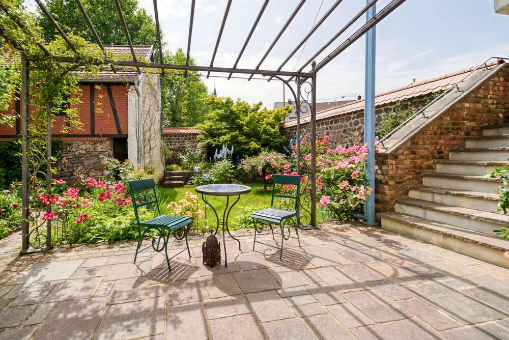 Der wunderschöne kleine Garten ist eine wahre Oase der Ruhe und lädt zum Verweilen ein. Genießen Sie die idyllische Atmosphäre und die Möglichkeit, im Freien zu entspannen oder zu gärtnern. Besonders wird der spezielle und außergewöhnliche Charme dieses Anwesens durch das kleine Fachwerkhaus im Garten unterstrichen. Dieses kleine Häuschen war ganz früher ein Ziegenstall. Heute dient dieses zur Unterbringung von Gartengeräten. Das obere Stockwerk kann auch als Atelier Verwendung finden. Der Garten wird von einer ganz bezaubernden Mauer umrahmt, die bereits beim Betreten des wunderschönen Gartens und auf den allerersten Blick ein wohliges Gefühl von Schutz und Privatsphäre bietet.