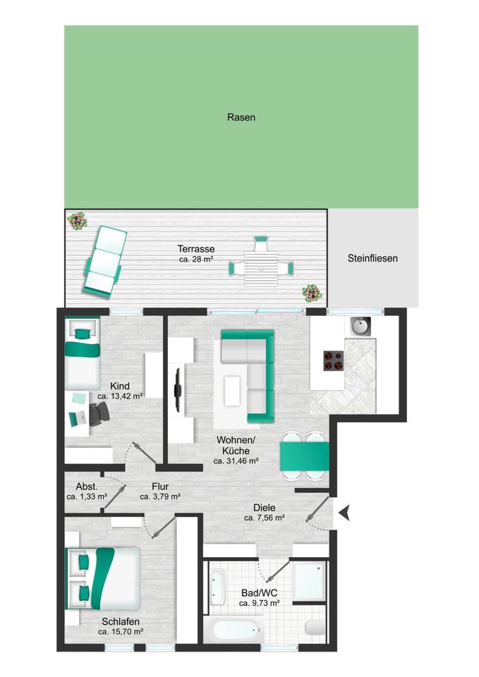 Gesamtgröße:ca. 95,00 m²