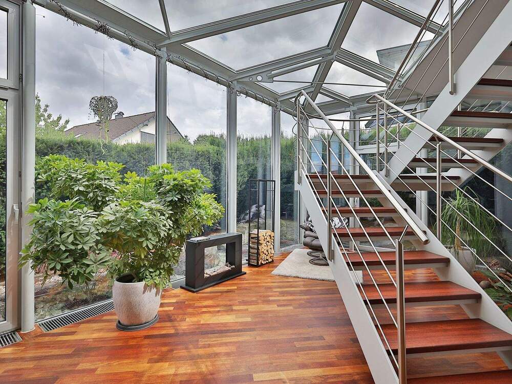 • Voll verglaster Bereich mit Zugang zum Elternbereich im Obergeschoss -